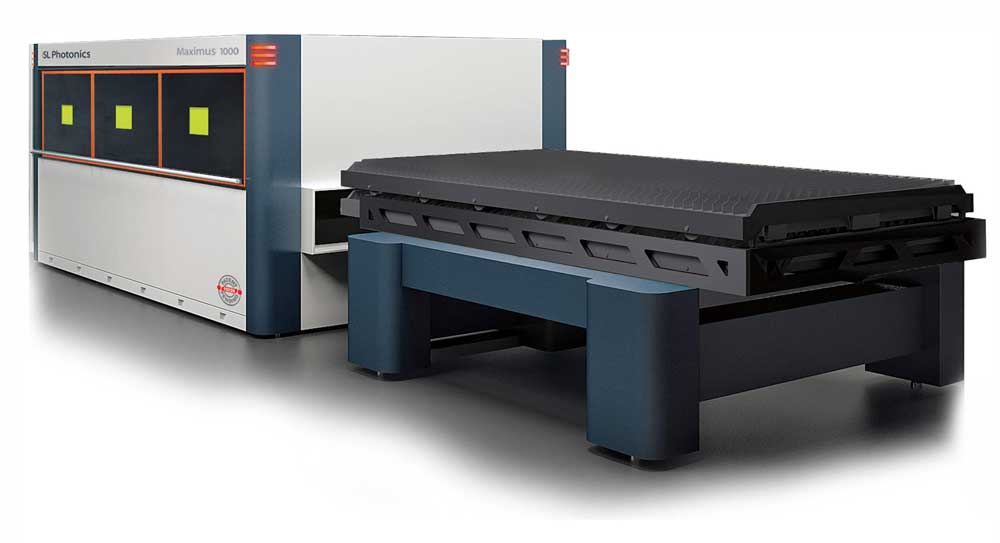 Nový model Maximus je vysokorýchlostné 2D laserové rezacie zariadenie pre platne s veľkosťou maximálne 1500 x 3000 mm. Dva výmenné stoly a sofistikovaný dizajn tela stroja zvyšujú efektivitu a skracujú čas potrebný na nakladanie a vykladanie materiálu. Vysoko výkonné servomotory MDS-D-SVJ3 Series majú vstavané napájacie zdroje, vďaka ktorým sú pohonné jednotky veľmi kompaktné. Precízne AC-servomotory Mitsubishi Electric uvádzajú osi X, Y a Z stroja do pohybu po hrebeni špirálovitým ozubeným kolesom, ktoré zaisťuje zrýchlenie až do 10 m/s a rýchlosť 80 m/min.